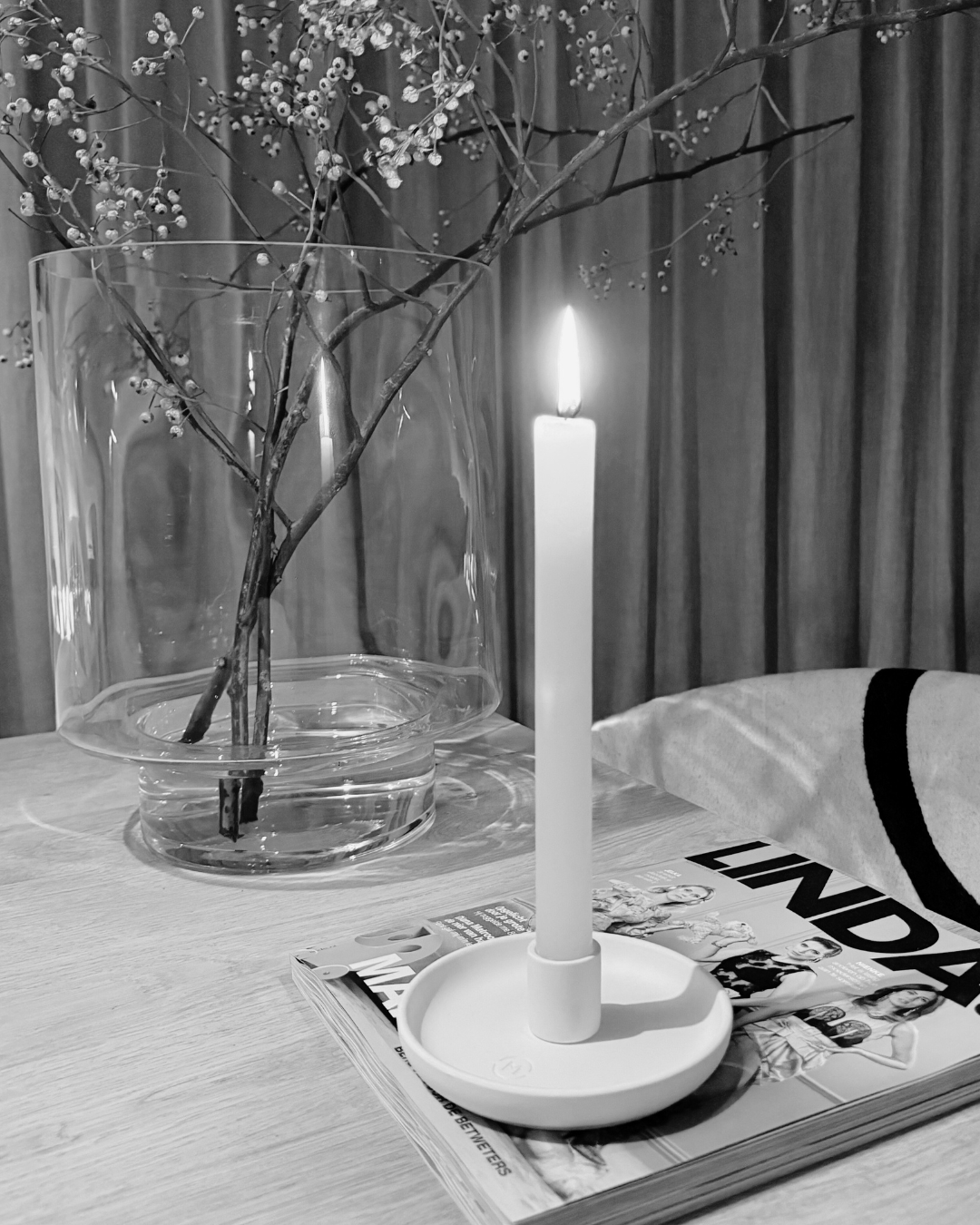 Mooie basic kaarshouder in het crème wit gemaakt van keramiek. Door z'n eenvoud verlicht hij elke plek met een serene rust.