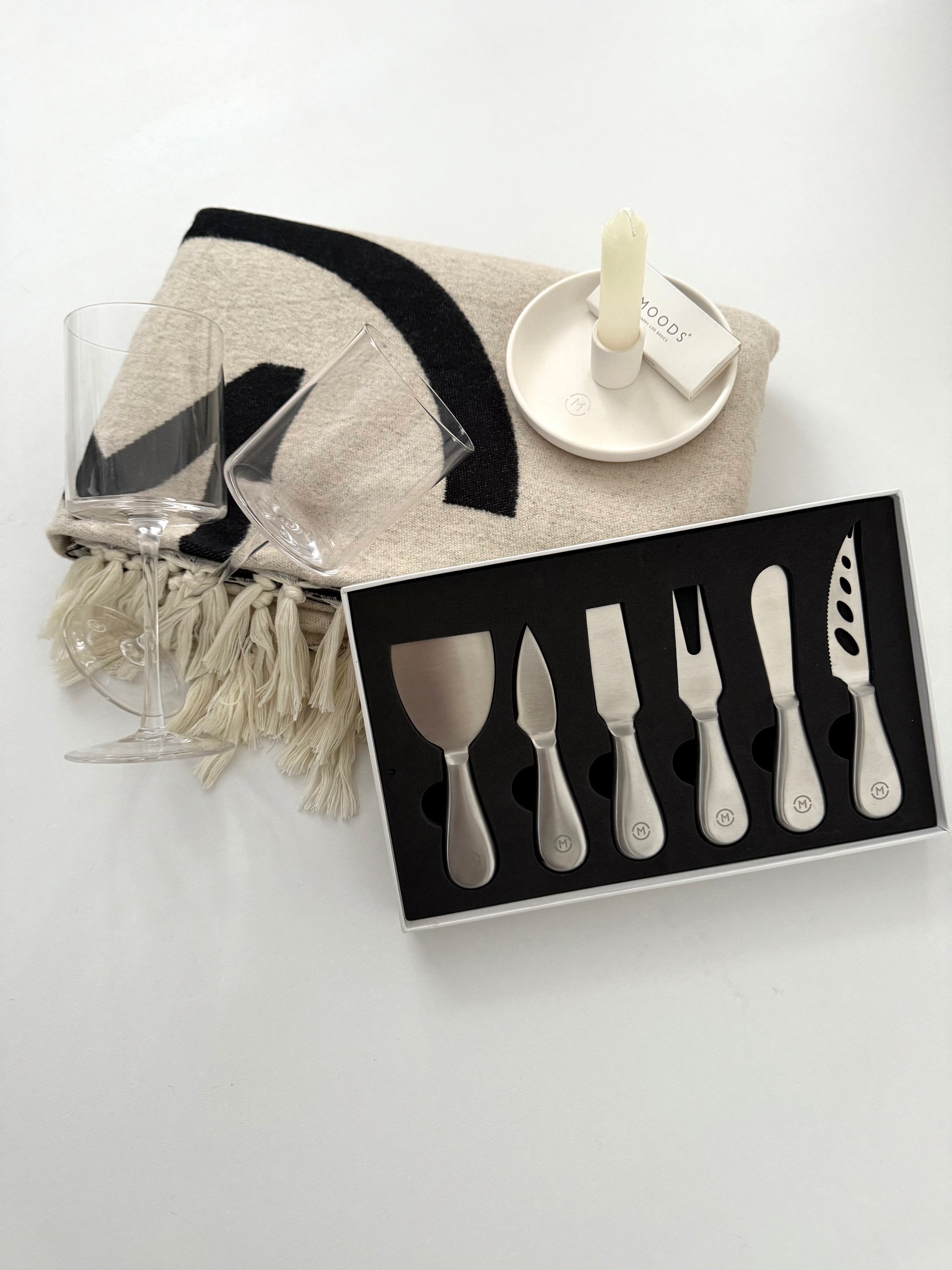 Deze geweldige set is het perfecte cadeau voor zowel een man als vrouw. Een heerlijk plaid waar je samen mee op de bank kruipt met een glas wijn en kaasplankje met de kaasmesjes erbij en voor extra sfeer een kaarshouder van keramiek incl. kaars. Alles wat je nodig hebt voor een relaxte avond 🤍